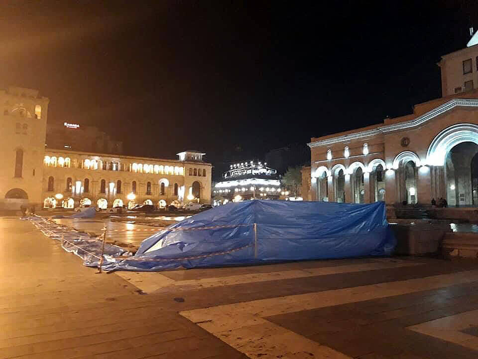 Քաղաքացիները ահազանգում են,որ Երևանի քաղաքաետարանը սկսել է քանդել Հանրապետության հրապարակի քարե գորգը: Ըստ շինաշխատանքների վայրում փակցված վահանակի այն արվում է շատրվանների ջրավազանի շրջակա միջավայրի վերանորոգման համար: