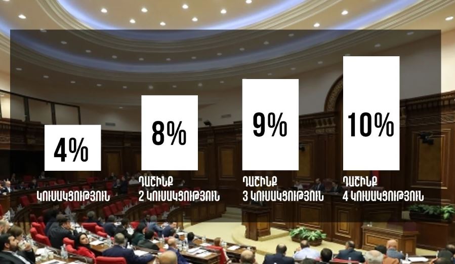 «Երեկ խորհրդարանում կայացած գիշերային արտահերթ նիստի ընթացքում առաջին ընթերցմամբ ընդունվեց ««Հայաստանի Հանրապետության ընտրական օրենսգիրք» սահմանադրական օրենքում փոփոխություններ եւ լրացումներ կատարելու մասին» նախագծերի փաթեթը։ Ինչպես հայտնի է, այս փաթեթի մեկ դրույթը՝ համամասնական ընտրակարգի անցնելը, արդեն ընդունվել էր խորհրդարանի կողմից եւ կկիրառվի հունիսի 20-ին կայանալիք արտահերթ խորհրդարանական ընտրությունների ժամանակ։ Այս մեծ փաթեթը ուղարկվել էր նաեւ Վենետիկի հանձնաժողով, եւ ապրիլի 22-ին իշխող ուժը ստացել էր նաեւ նրանց եզրակացությունը։ Սակայն նկատենք՝ երեկ ընդունված նախագծի դրույթներից որեւէ մեկը հունիսի 20-ին կայանալիք արտահերթ խորհրդարանական ընտրությունների ժամանակ չի կիրառվելու։ Այսպիսով, ի՞նչ հիմնական փոփոխություններ են առաջարկվում։ Առաջին հերթին հեշտացվում է խորհրդարան մուտք գործելու կարգը կուսակցությունների համար, սակայն բարդանում է դաշինքների համար։ Այժմ գործող 5 տոկոսի փոխարեն կուսակցությունը կմտնի խորհրդարան նաեւ 4 տոկոսի պարագայում, այսինքն՝ շեմն իջեցվում է, իսկ, ահա, այժմ դաշինքների համար գործող 7 տոկոսի փոխարեն այլ կարգավորումներ են։ Եթե դաշինքը բաղկացած է երկու կուսակցությունից, ապա անցողիկ շեմը 8 տոկոս է, երեք կուսակցություններից կազմված դաշինքի դեպքում՝ 9 տոկոս, իսկ 4 եւ ավելի կուսակցություններից կազմված դաշինքի դեպքում՝ 10 տոկոս։ Նկատենք՝ այս արտահերթ խորհրդարանական ընտրությունների ժամանակ ընդդիմադիր ուժերը հիմնականում հանդես են գալու դաշինքով, իսկ, ահա, իշխող ուժը չի բացառել հենց կուսակցությամբ մասնակցելու տարբերակը։
