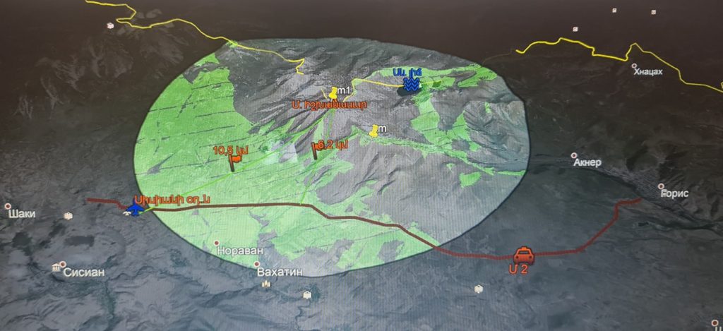 Որպեսզի վտանգի աստիճանը որոշ կենդանիների համար ընկալելի լինի նկարներում պատկերված է լեռնազանգվածի տարբեր կետերից անզեն աչքով 10 կմ շառավղով (կանաչ հատվածները) տեսանելիությունը։