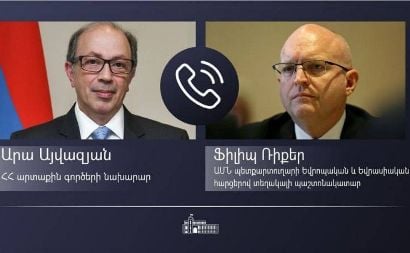 Տարածաշրջանային կայունության եւ անվտանգության հարցերը քննարկվել են Հայաստանի ԱԳՆ պաշտոնակատար Արա Այվազյանի եւ ԱՄՆ պետքարտուղարի՝ Եվրոպայի եւ Եվրասիայի գործերով օգնականի տեղակալ Ֆիլիպ Ռիքերի հետ: