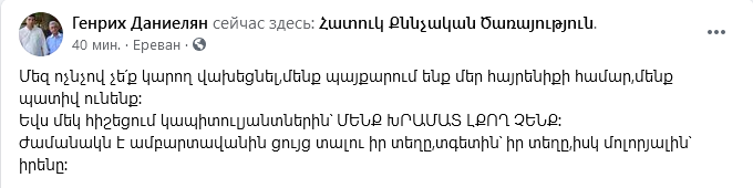Գենրիխ Դանիելյան իր Ֆեյսբուքյան էջում գրում է․