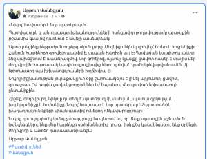 Նիկոլի իշխանության յուրաքանչյուր օրը շարունակելու է լինել արյունոտ, ցավոտ, զոհաշատ: Իմ խորին ցավակցություններ եմ հայտնում մեր զոհված երիտասարդի ընտանիքին: