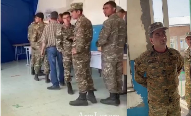 ArmLur.am արձանագրեց, որ Հրամանատար Գեւորգ Պետրոսյանը ակնհայտորեն ուղղորդում է զինվորներին, դուրս չի գալիս ընտրատեղամասից: Նկատենք, որ անգամ մեր ահազանգից հետո հրամանատարը ոչ միայն դուրս չեկավ տեղամասից, այլեւ հասավ քվեախցիկների մոտ, որպեսզի հոգեբանական ազդեցություն ունենա զիվորների վրա։