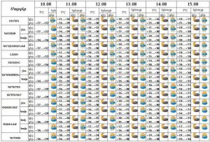 Օգոստոսի 10-15-ն առանձին շրջաններում կեսօրից հետո և գիշերը սպասվում է կարճատև անձրև և ամպրոպ, առանձին հատվածներում հնարավոր է նաև կարկուտ: