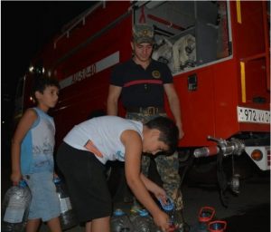Հրշեջ մեքենաները շրջում են փողոցներով և խմելու կենարար ջուրը հասցնում բնակչությանը: Փրկարարներն օգնում են նաև տարեց և հաշմանդամության խնդիր ունեցող մարդկանց: