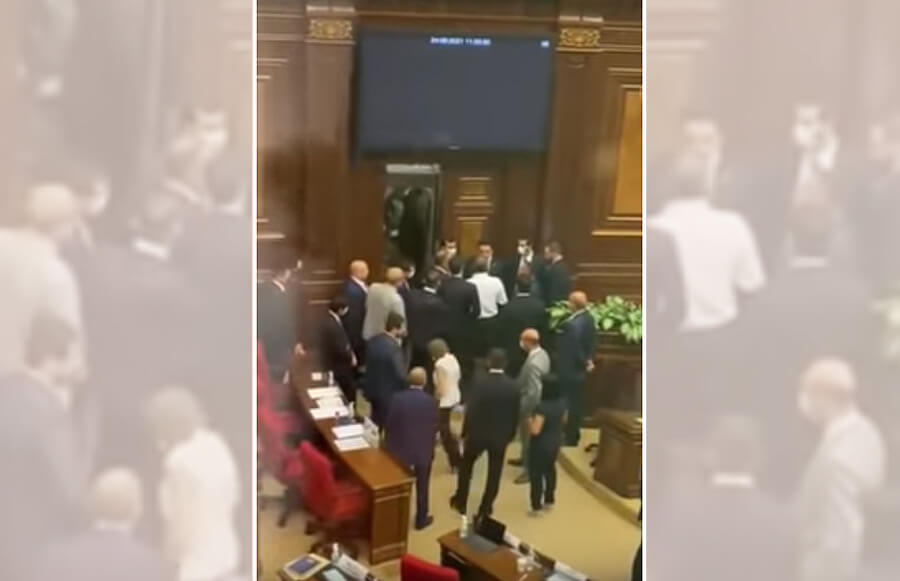 ArmLur.am-ի տեսախցիկը ընդմիջման ժամանակ ֆիքսել է, թե ինչպես են Ալեն Սիմոնյանն ու Սեյրան Օհանյանն ինչ-որ հարցի շուրջ վիճաբանում ԱԺ նիստերի դահլիճում: