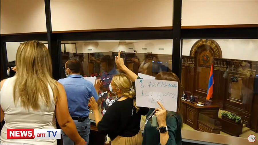 Լրագրողներն  այսօր` օգոստոսի 24-ին, ի նշան լրատվամիջոցների սահմանափակումների Կառավարության ծրագրի քննարկման Նիկոլ Փաշինյանի ելույթի ժամանակ  ԱԺ օթյակում բողոքի ակցիա իրականացրեցին: