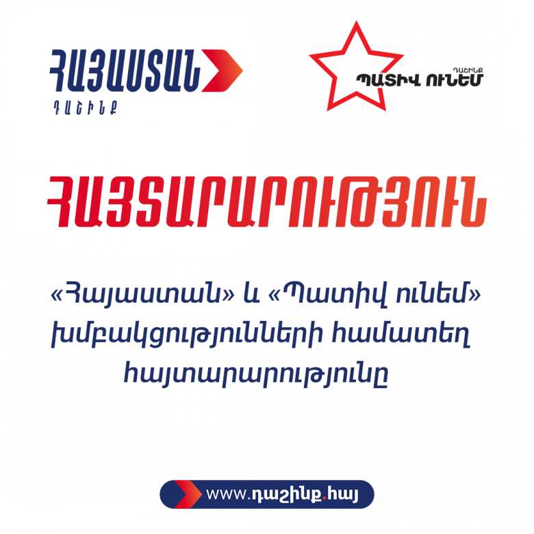 «Հայաստան» և «Պատիվ ունեմ» դաշինքները համատեղ հայտարարություն են տարածել: Հայտարարության տեքստում մասնավորապես ասվում է.
