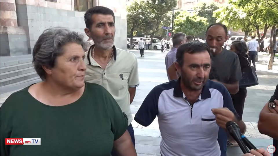 Մեր երեխաներն այսօր էլ ծառայում են Արցախում, բայց ում համար են ծառայում, կռիսների՞, ոհմակների՞, թե՞ անասունների: Մենք չենք ուզում Երեւանի մեջ մնանք, մերը հողն ու ջուրն է, տվեք հող, ջուր, գնանք ապրենք: Եթե չէ, տվեք փախստականի կարգվիճակ ու ժամանակ տվեք, որ հեռանանք: Իմ տունը վերադարձնում են ինձ Հայաստանում, Արայիկի տված 10 մլն-ը իր գլխին տված, եթե չի կշտացել, թող կշտանա»,-ասաց ակցիայի մասնակիցներից մեկը: