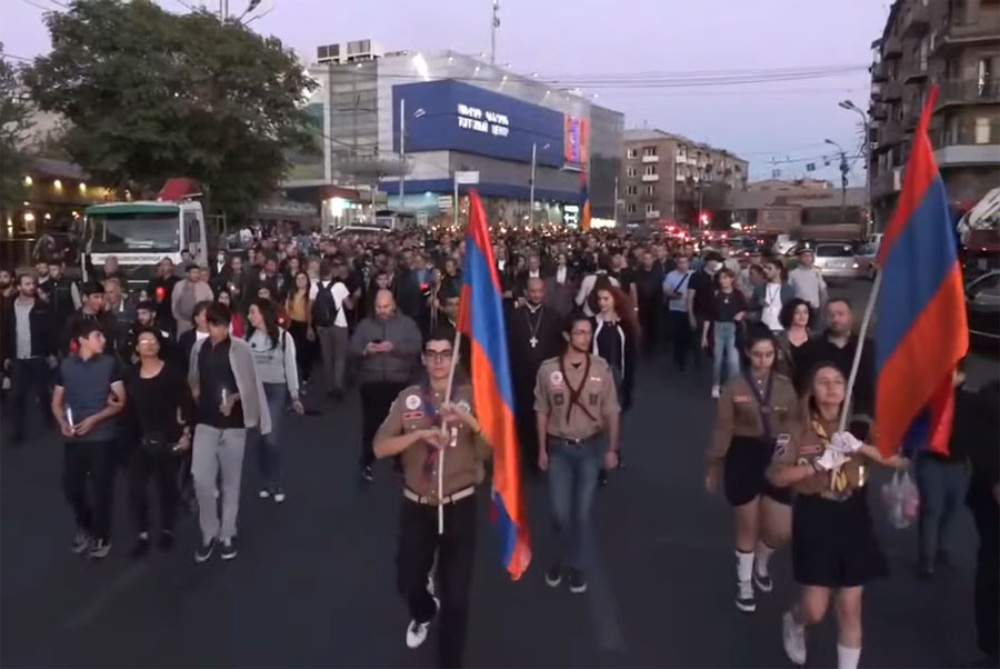 Երեւանում Գարեգին Նժդեհի հրապարակից մեկնարկեց ջահերով երթ` ի հիշատակ 44-օրյա պատերազմի նահատակների: Երթի մասնակիցներն ուղեւորվում են դեպի Եռաբլուր զինվորական պանթեոն, որտեղ հարգանքի տուրք կմատուցեն հայրենիքի համար իրենց կյանքը նվիրաբերած զինվորների հիշատակին: