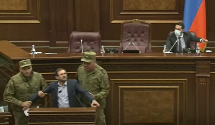 Լարված վիճակ ԱԺ–ում. անվտանգության աշխատակիցները Գեղամ Մանուկյանին հեռացրին ամբիոնի մոտից