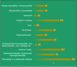 Երրորդ հորիզոնականում է «հանգիստ և մշակույթ» ոլորտը 11,5% ցուցանիշով։ Նվազագույն գնաճ արձանագրվել է «կապի» ոլորտում՝ 0,9%։