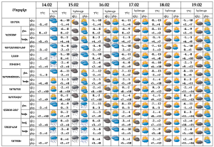 Հանրապետության տարածքում` փետրվարի 15- ցերեկն, 16-ին առանձին շրջաններում սպասվում են թույլ տեղումներ և մառախուղ: Փետրվարի 17-20-ին սպասվում է առանց տեղումների եղանակ: