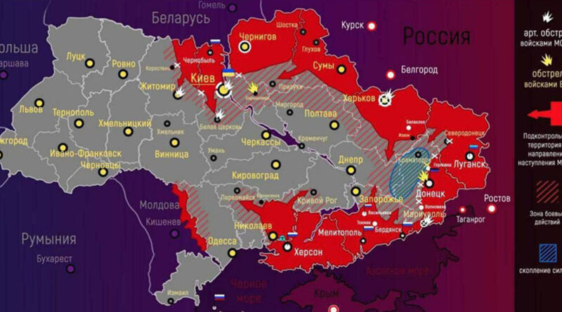 - Էներգոդարում, որտեղ գտնվում է Զապորոժիեի ԱԷԿ-ը, մարտեր են ընթանում։ Ամենայն հավանականությամբ ռուսական զինուժը նպատակ ունի իր վերահսկողության տակ վերցնել նաև այդ ատոմակայանը։ Նշենք, որ Չերնոբիլի ԱԷԿ-ը գտնվում է ռուսական վերահսկողության և պաշտպանության ներքո։