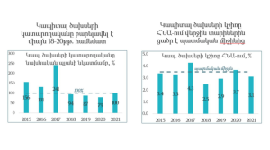 «Լույս»-ի փոխանցմամբ՝ կապիտալ ծախսերի վերլուծության պարագայում կարևոր է նաև ուսումնասիրել տնտեսության համեմատ դրանց կշռի փոփոխությունը, որտեղ պատկերը նույնպես մտահոգիչ է, քանի որ կապիտալ ծախսերը 2021թ. կազմել են ՀՆԱ-ի 3.1%, ինչը ցածր է 2020թ. ցուցանիշից շուրջ 0.6 տոկոսային կետով, իսկ 2017թ. ցուցանիշից՝ շուրջ 1.2 տոկոսային կետով, ինչպես նաև ցածր է ՀՀ պատմական (2000-2020թթ. միջին) կապիտալ ծախսեր/ՀՆԱ հարաբերակցությունից շուրջ 0.6 տոկոսային կետով (2020թ.-ի պարագայում կապիտալ ծախսերի կշռի աճը ՀՆԱ-ի նկատմամբ պայմանավորված էր ռազմական գործողությունների արդյունքում ռազմական նպատակներով ծախսեր կատարելու անհրաժեշտությամբ)։ Պատմական միջինի համեմատ կապիտալ ծախսերի ՀՆԱ-ի նկատմամբ կշռի ամենից բարձր, աննախադեպ ցուցանիշն իրականում արձանագրվել է կրկին 2017թ.-ին` կազմելով 4.3%: (Գրաֆիկ 2)