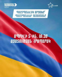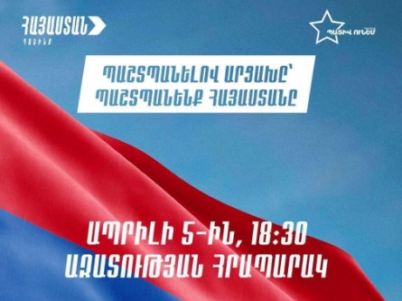 Ապրիլի 5-ին, ժամը 18.30-ին բոլորս միասին, անկախ մեր քաղաքական հայացքներից եւ կուսակցական պատկանելիությունից հավաքվենք «Ազատության» հրապարակում։
