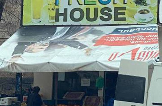 Օրինակ, Չարենցավանում գործող այս միրգ-բանջարեղենի խանութի տերը Նիկոլ Փաշինյանի նկարով նախընտրական պաստառն ամենաուղիղ իմաստով է օգտագործում՝ որպես իր ապրանքի գլխին ծածկ՝ տանիք։ Վերեւում «Fresh house»-ն է, ներքեւում՝ Փաշինյանը, նրա տակ՝ մրգերն ու բանջարաբոստանային կուլտուրաները։ Իսկը՝ ՔՊ-ական իշխանության հիերարխիայի նման»: