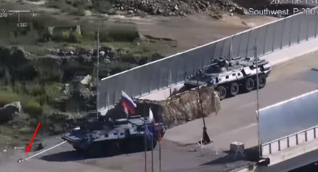 Ռուս խաղաղապահները Հաքարի կամրջի հատվածից, հեռացնում են թշնամի Ադրբեջանի դրոշը Հայաստանի սուվերեն տարածքից:
