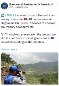 ԵՄ դիտորդական առաքելությունն ավելացրել է իր պարեկային գործունեությունը Գեղարքունիքի և Սյունիքի մարզերի սահմանամերձ տարածքներում ցանկացած ռազմական զարգացում արձանագրելու համար։