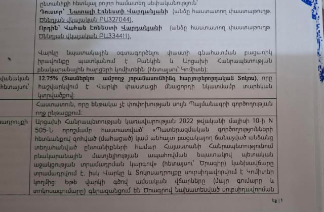 2020թ.ին զոհվածների Արցախից տեղահանված այն ընտանիքները, ովքեր օգտվել են ՀՀ կառավարության որոշումից, ստացել են սերտիֆիկատ ՀՀ-ում տուն գնելու նպատակով, ու եռակողմ պայմանագիր կնքել` գնորդ, պետություն (ԱՀ), բանկ, որով պետությունը պարտավորվում է վարձերը մարել: Պարզվում է վերջինս հրաժարվել է վճարել, Ներդրումային հիմնադրամն էլ գումար չունի:
