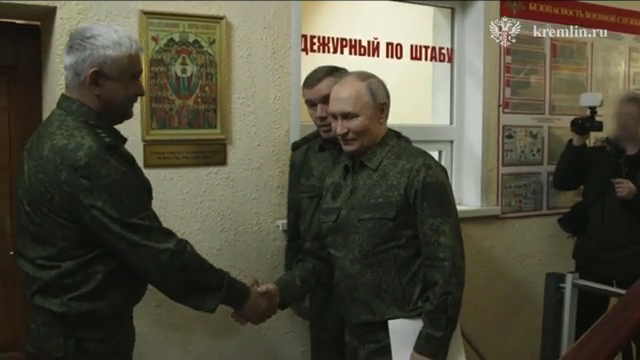 Պուտինը մարտի 12-ին զինվորական համազգեստով ՌԴ ԶՈւ Կուրսկի խմբավորման հրամանատարական կետ է այցելել։ Նախագահին դիմավորել է ՌԴ զինված ուժերի գլխավոր շտաբի պետ Վալերի Գերասիմովը։ Նա ՌԴ նախագահին զեկուցել է Կուրսկի սահմանային գոտում տիրող իրավիճակի մասին։
