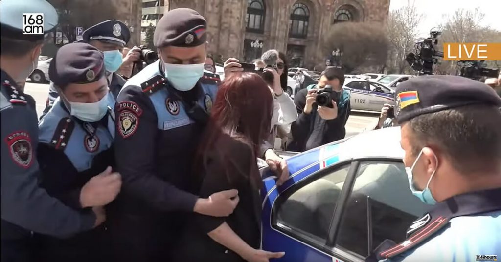 Ոստիկանությունը սկսեց ուժ կիրառել կառավարության շենքի մոտ ակիցա իրականացնող կանանց նկատմամբ: Ակցիայի մասնակից կանանցից մի քանիսին փորձում են ուժով բերման ենթարկել: