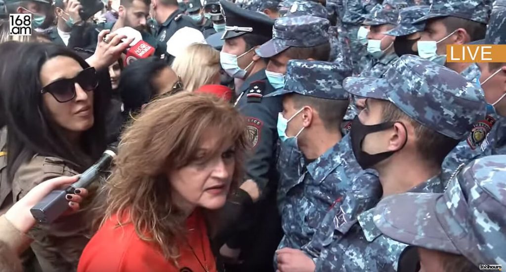 Ոստիկանությունը սկսեց ուժ կիրառել կառավարության շենքի մոտ ակիցա իրականացնող կանանց նկատմամբ (տեսանյութ)