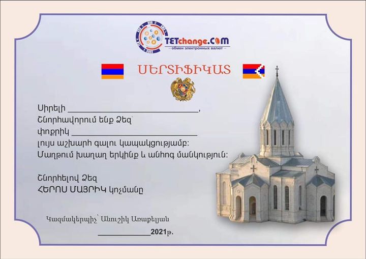 Գումարը կտրամադրվի մեր խորհրդանշական Սերտիֆիկատով: