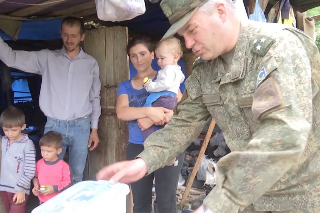 В ходе гуманитарной акции российские миротворцы передали беженцам и вынужденным переселенцам вещи первой необходимости, предметы домашнего обихода, одежду, предметы гигиены, игрушки и коляски для детей.