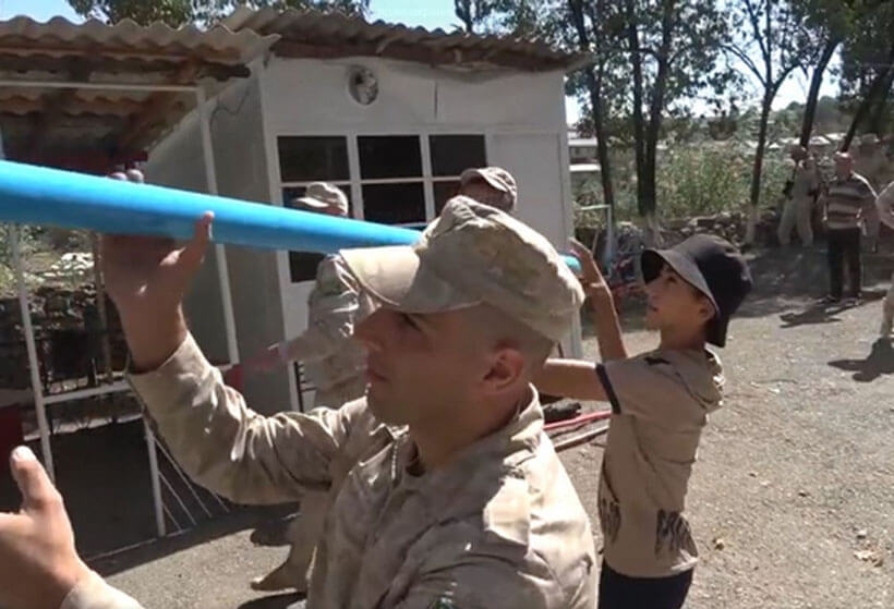 Ранее российские миротворцы во дворе школы-интерната установили детский батут, собрали настольный футбол, приняли участие в кулинарных конкурсах и передали от сборщиков винограда первый урожай.