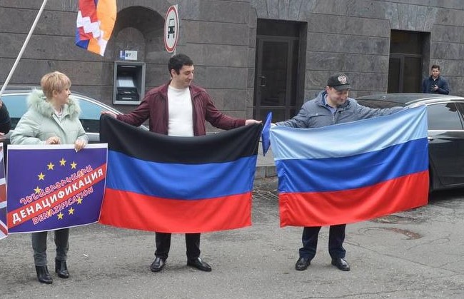 Пресс-секретарь посольства РФ в Армении вышел поприветствовать участников акции в поддержку России. Ему был передан меморандум, составленный по итоам прошедшего вчера в отеле Метрополь форума «Мир без нацизма и за традиционные ценности».