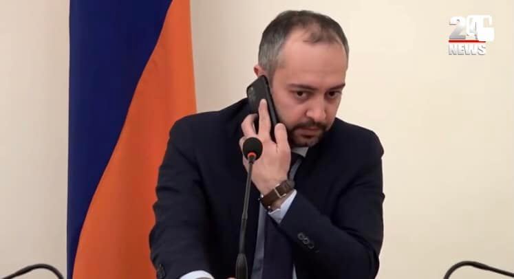 Звонок поступил Агаджаняну в тот момент, когда он говорил о русских: сначала он обвинял их, но потом смягчил тон.