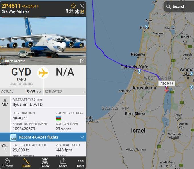 1. Новый самолет с вооружением из Израиля прилетел в Азербайджан. Военно-транспортный самолёт Ил-76 азербайджанской компании Silk Way Airlines прилетел в Баку из Увды (израильская авиабаза). После войны это, как минимум, 5-ый рейс с вооружением из Израиля в Азербайджан.