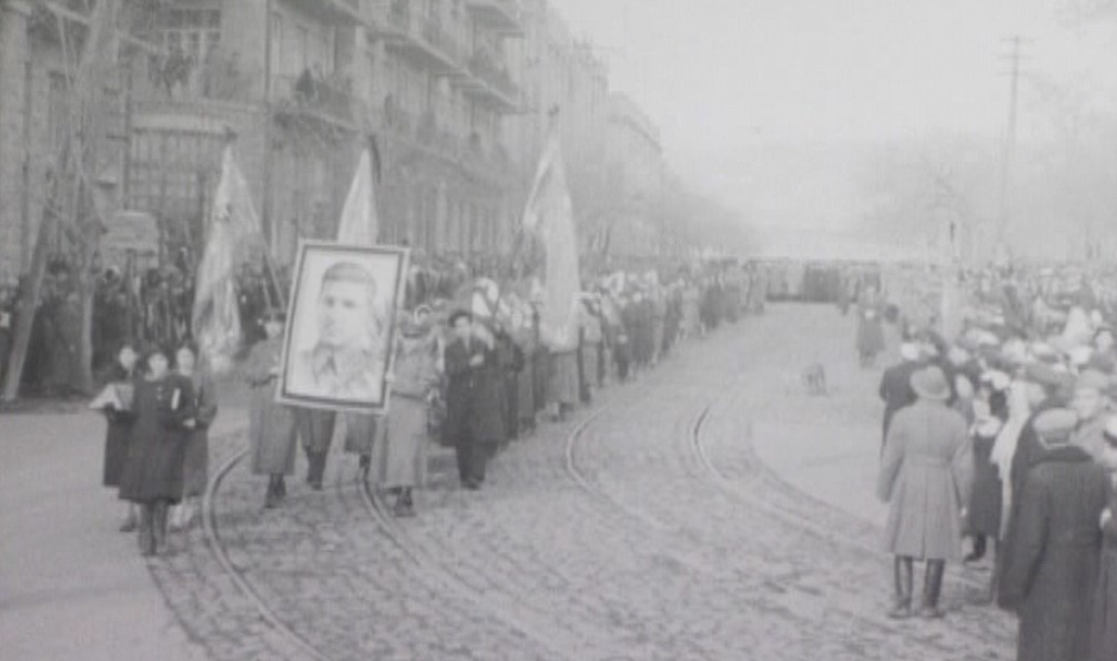 На видео редкие кадры хроники военных дней. В разгар войны проходят похороны командующего армянской танковой дивизией, полковника Симона Закияна.