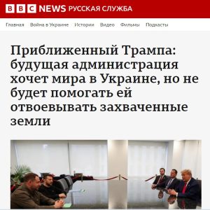 Кроме того, Брайан Ланза, старший республиканский стратег по выборам, заявил 9 ноября, что приоритетом Трампа по Украине будет достижение мира, а не помощь в возвращении захваченных Россией украинских территорий — Крыма и части Донбасса. Позднее, по данным Reuters, в команде избранного президента дистанцировались от этих слов.
