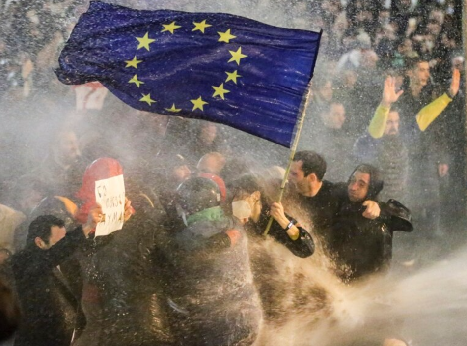 Протестные акции продолжаются в Грузии несколько дней, они начались после решения правящей партии «Грузинская мечта» отложить до 2028 года переговоры о вступлении страны в Евросоюз.