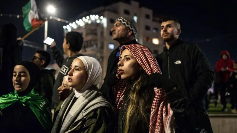 Прибытие автобусов с освобожденными палестинцами в Рамаллу на Западном берегу сопровождалось фейерверком, передает Reuters. Встречать их, по оценке агентства, вышли «тысячи человек».