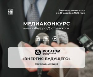 В рамках «Медиаконкурса имени Ф.М. Достоевского» к 80-летию атомной отрасли учреждена новая номинация совместно с Государственной корпорацией по атомной энергии «Росатом».